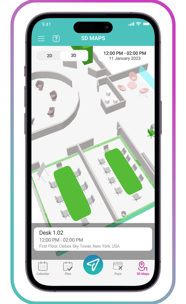 ממשק מפות 5D תצוגה סוחפת של מקום העבודה עם אובייקטים חיים בפועל.