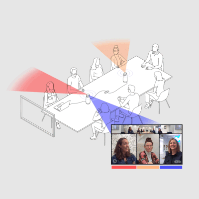 צרו חוויית מפגש היברידית סוחפת בכל חדר ישיבות עם מצלמת הועידה החכמה של OWL 360° מעלות עם עקיבה אוטומטית, כולל מיקרופונים ורמקולים מובנים ואיכותיים.